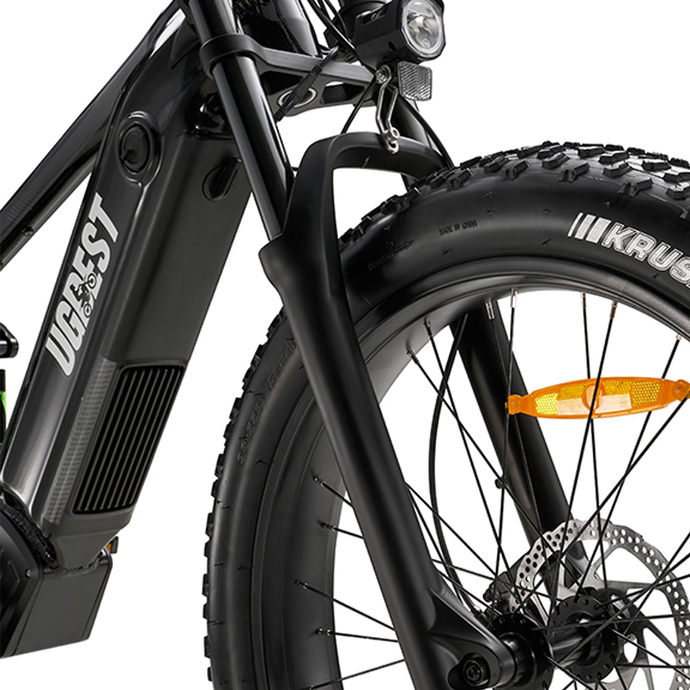 The UKS6 4.5" negative LCD display is mounted at the center for clear visibility and includes turn signal indicators and an integrated key switch for added security. Paired with a half-twist throttle, it delivers smooth, responsive control for an intuitive riding experience.